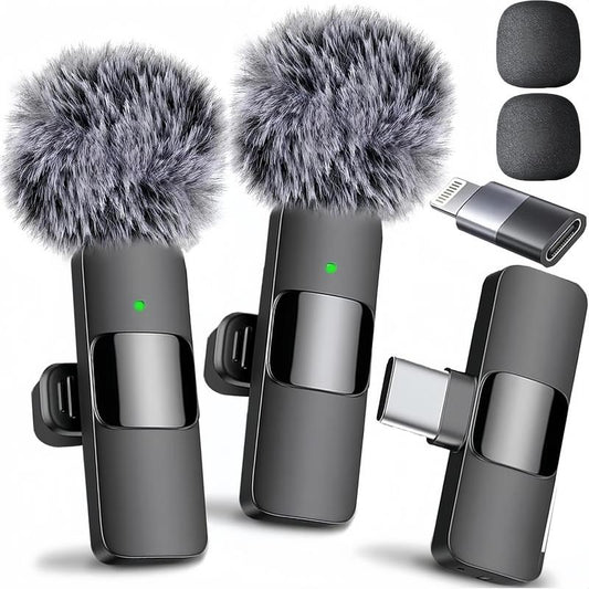 Wireless Lavalier Microphone for Iphone - Android, Ipad, Tablets, Bluetooth Mini Microphone with Noise Canceling,65Ft Transmission,6H Battery Life, Professional Lapel Mic for Video Recording